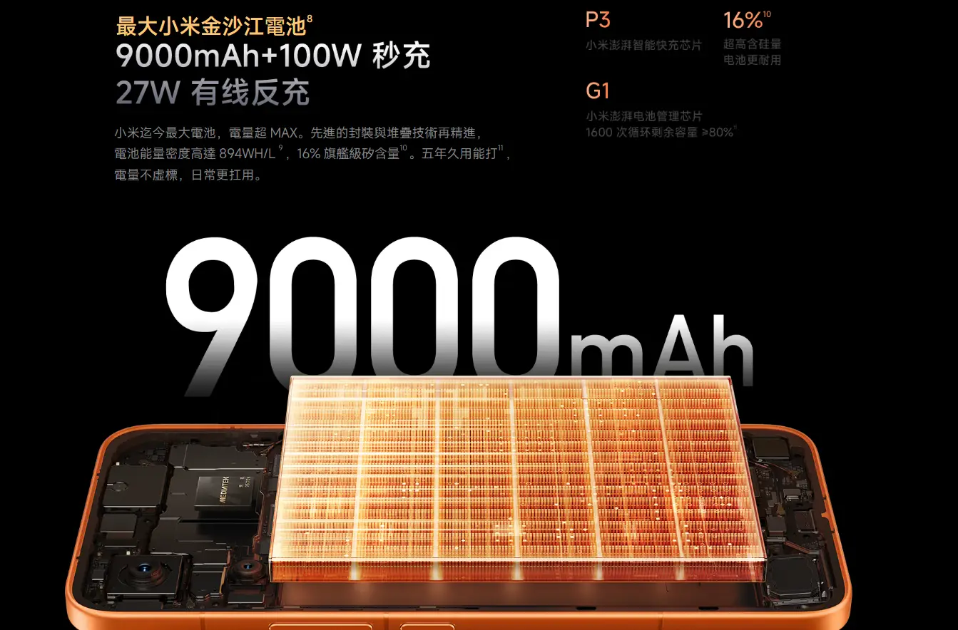 電池:9000mAh(紅米史上最大容量)