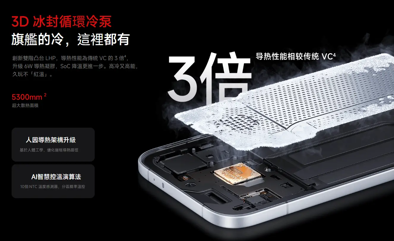 Turbo 5 強調升級散熱結構(官方描述為「3D 冰封循環冷泵」概念),散熱面積也有提升,明顯是為了長時間高負載而做的設計。