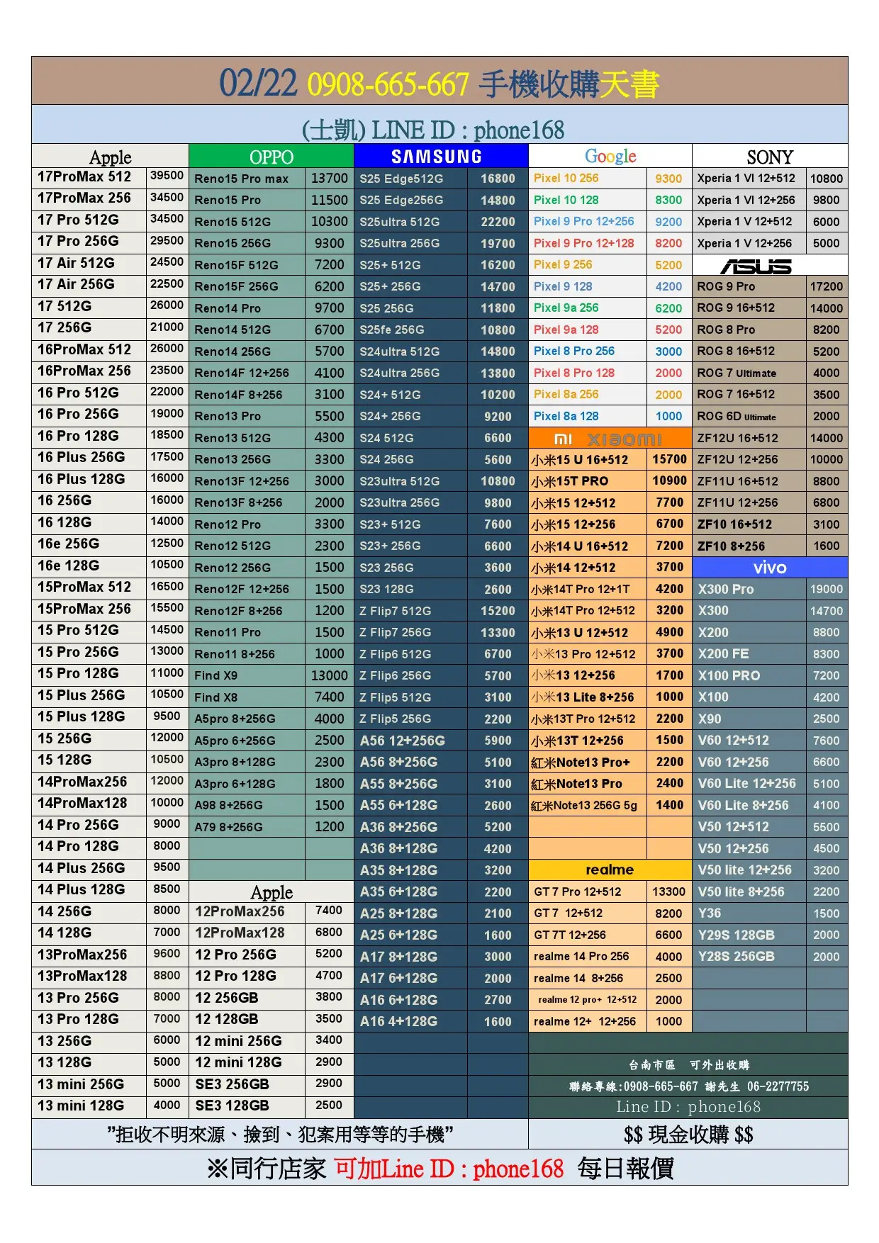 台南手機&遊戲機收購|115/02/22 收購參考更新