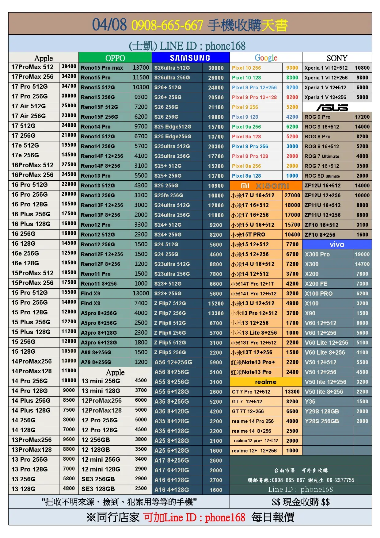 台南手機&遊戲機收購|115/02/22 收購參考更新
