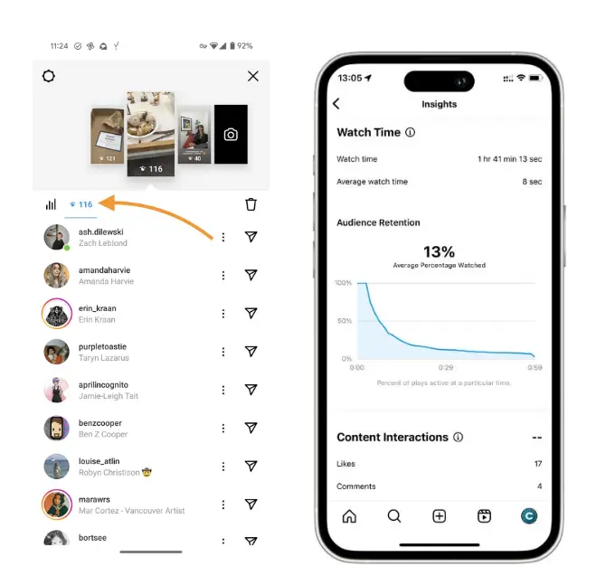 除了知道有誰看過,IG Plus 測試內容還包含能看到 Story Rewatches/限動重看次數。這代表創作者或品牌帳號可以更清楚判斷,哪一則內容不只是被看過,而是被重複回看,對內容吸引力判讀更有幫助。