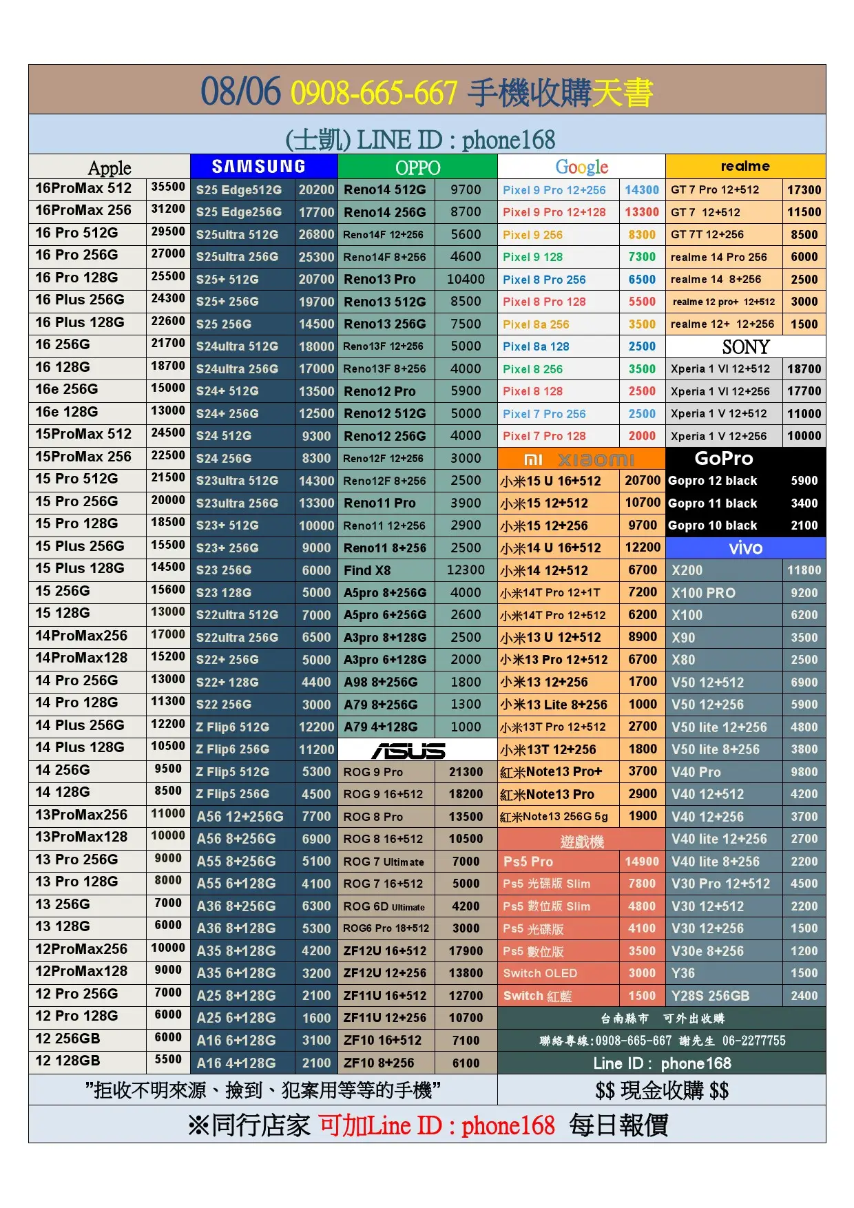 你想的到的在台南賣手機、收手機、中古機、行情、回收購買、拋售、收購等等的都在0908-665-667。台南二手機『超』高價收購找就對了~