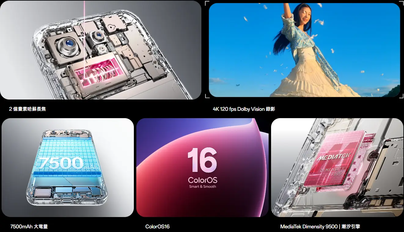 作為 OPPO 年度影像旗艦,Find X9 Pro 這次把「遠攝」、「續航」與「AI 影像」三件事一次拉滿。除了搭載 6.78 吋大螢幕 與 天璣 9500 旗艦晶片,更深化與哈蘇合作,帶來2 億畫素超級長焦與完整影像調校。