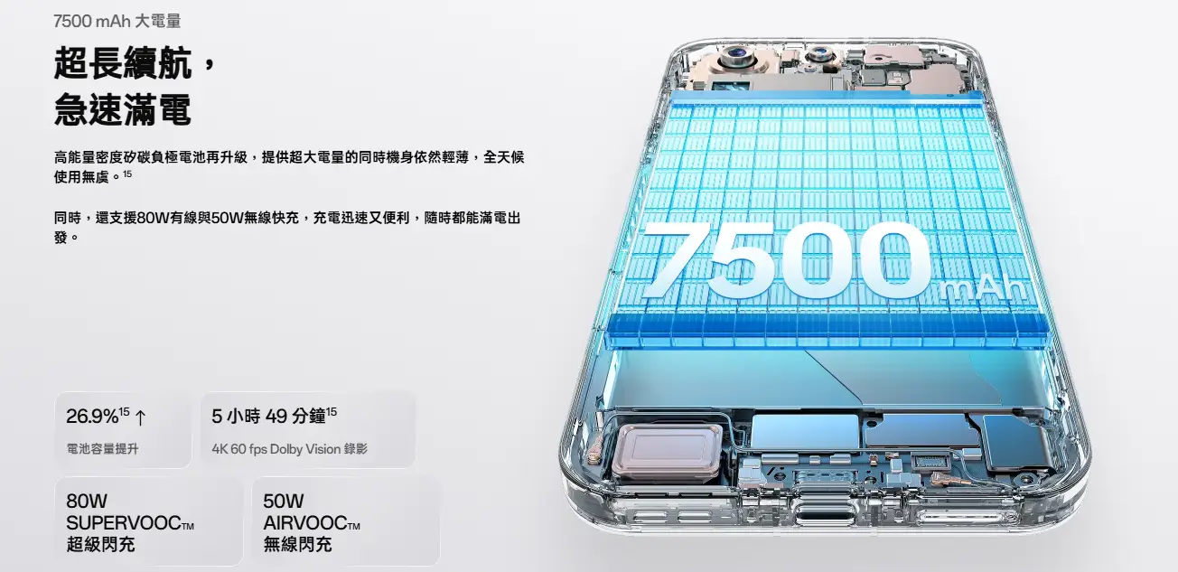 最後用 7,500mAh + 80W/50W把「影像旗艦的續航焦慮」一次處理掉。
