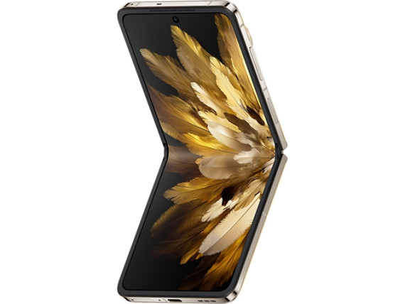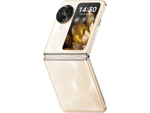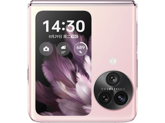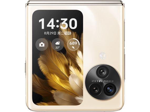 OPPO Find N3 Flip 豎向螢幕設計 OPPO Find N3 Flip 配備了一個 3.26 吋 AMOLED 封面螢幕,並以垂直方式呈現,此外還採用了康寧第七代大猩猩玻璃。展開後,它擁有一個 6.8 吋 AMOLED 內頁螢幕,支援自適應調整的 120Hz 螢幕更新率。全新升級的外螢幕體驗允許您輕鬆存取應用程式庫,快速回覆訊息,切換音樂,並搭配各種程式和小工具,包括「動態天氣壁紙」和「寵物互動桌布」等個人風格化桌布。