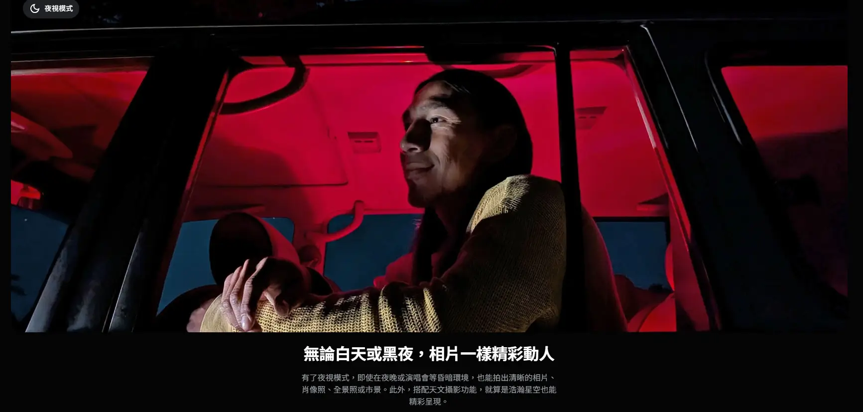 首次加入 天文攝影模式,搭配夜視模式,在夜晚或低光環境中也能拍出清晰夢幻的星空或夜景。